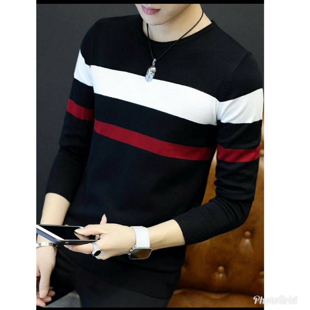 Laki Cowok Pria Idaman Hitam Putih Merah Biru Sweater Rajut Pria London 4 Warna Shopee Indonesia