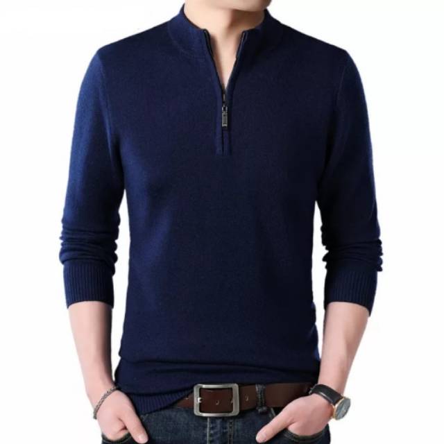 Sweater Rajut Pria Kerah Resleting Katun Tebal Berkualitas Shopee Indonesia