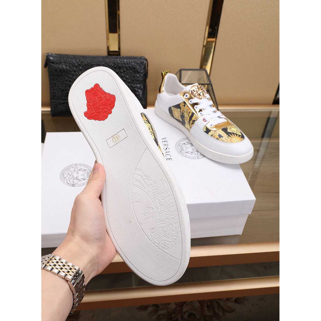 Versace Sepatu Pria Eropa Stasiun 2021 Musim Semi Dan Musim Panas Baru Fashion Kasual Versi Korea Dari Tren Medusa Bordir Berubah Warna Kulit Sepatu Pria Lazada Indonesia